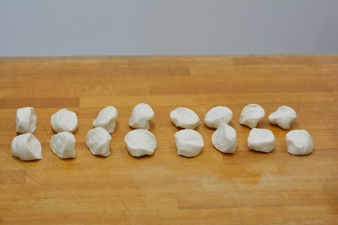 3.待手溫能接受時(shí),手揉成較光滑的面團(tuán),蒙保鮮膜餳20分鐘;