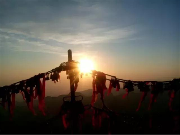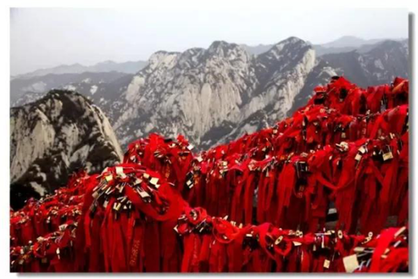華山是一座愛(ài)情的殿堂,華山上的愛(ài)情故事悲烈、凄美而感人。我們?cè)?jīng)為世界上許許多多的愛(ài)情故事所感動(dòng)。其實(shí),發(fā)生在華山上的愛(ài)情故事一樣讓人的心情無(wú)法平靜。眾所周知的神話傳說(shuō)《寶蓮燈》中,三圣母為了愛(ài)情,被二郎神巨石壓在華山頂上;弄玉為了愛(ài)情,逃離安逸的生活,與蕭史雙雙來(lái)到華山,琴瑟合鳴;漢臣王咸不畏艱險(xiǎn),到華山尋找賢妻南陽(yáng)公主等等這些愛(ài)情故事,感天動(dòng)地,流傳不衰,不知讓多少人為之贊嘆。也許是讓華山上這些動(dòng)人的愛(ài)情故事所感染,不知從什么時(shí)候開(kāi)始,在代表著堅(jiān)實(shí)連接的一串串鐵鏈上,游人掛上了閃閃的金鎖,把矢志不渝的愛(ài)情鎖在華山上,在華山的見(jiàn)證下,祝愿自己的愛(ài)情如同華山一樣永遠(yuǎn)不會(huì)改變。
