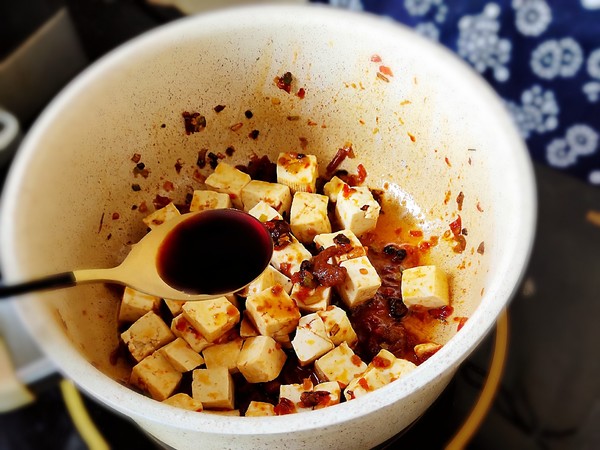 豆腐250克 蔥花10克 鮑魚干貝xo醬2勺 生抽1湯匙 老抽0.5湯匙