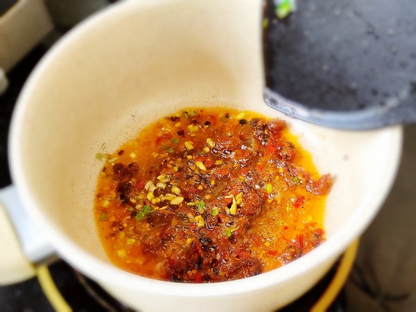 3.然后放入兩勺xo醬炒出紅油辣的哦