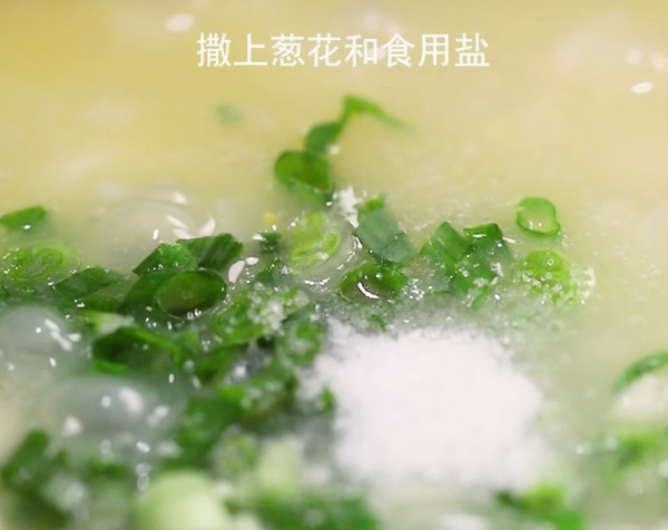 6.最后撒上蔥花和鹽,攪拌均勻即可關(guān)火。