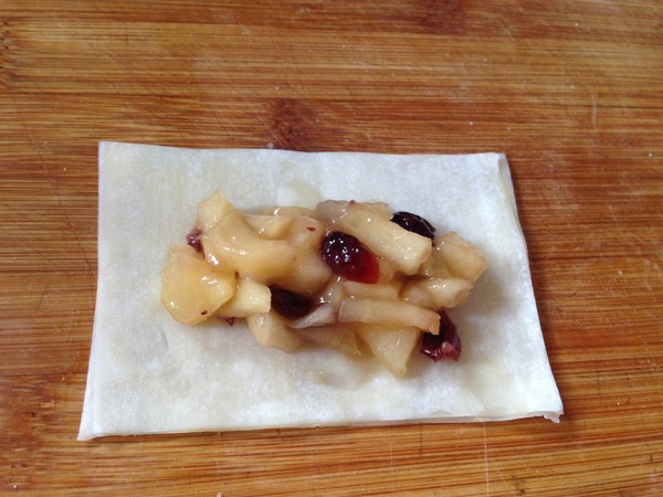 主料:蘋果1個(gè) 餛飩皮30張 蔓越莓干20克 黃油(餡料)8克