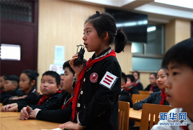 5月13日,一名學(xué)生在科普直播課上提問。新華社記者 張建松 攝