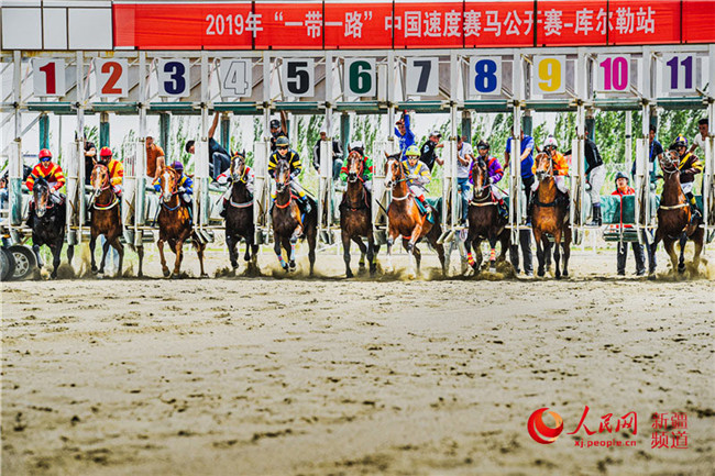 近日,2019年“一帶一路”中國速度賽馬公開賽·新疆庫爾勒站(第二屆全國青年運動會速度賽馬預賽·新疆站)比賽在新疆庫爾勒市體育公園正式拉開帷幕,來自疆內外的1.8萬余名游客現(xiàn)場感受了馬背上的“速度與激情”。(趙環(huán) 彭守群)