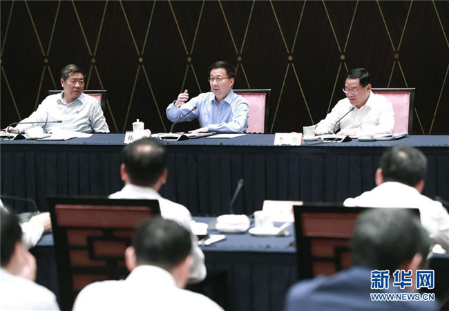 6月3日,中共中央政治局常委、國(guó)務(wù)院副總理、推動(dòng)長(zhǎng)三角一體化發(fā)展領(lǐng)導(dǎo)小組組長(zhǎng)韓正在上海主持召開推動(dòng)長(zhǎng)三角一體化發(fā)展領(lǐng)導(dǎo)小組會(huì)議。 新華社記者 龐興雷 攝
