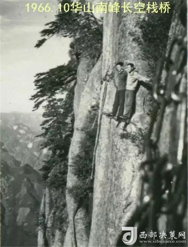 我照相的時(shí)候,一只手抓鐵鏈,一只手做動作,身體是緊貼石壁。難得的是當(dāng)年一起去的一個(gè)女生給我照相,在我對面一樣危險(xiǎn),但女俠單手抓鐵鏈,整個(gè)身體外突懸在半空中,另一只手拿相機(jī)找一個(gè)最好角度給我拍照,我都替她擔(dān)心。——摘自網(wǎng)友2003年爬華山的游記