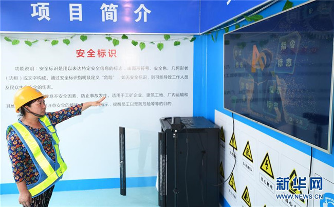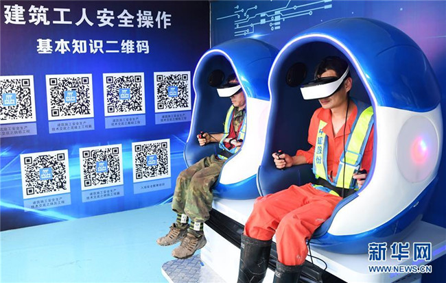 6月5日,重慶化龍橋超高層項目工人在VR安全體驗館內(nèi)通過特種標識識別系統(tǒng)學(xué)習安全標識。新華社記者 王全超 攝