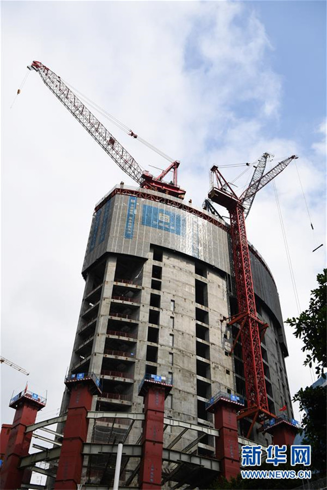 這是6月5日拍攝的重慶化龍橋超高層項目施工現(xiàn)場。新華社記者 王全超 攝