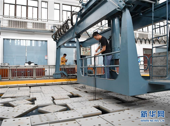 在西北工業(yè)大學(xué)航海學(xué)院消聲水池實(shí)驗(yàn)室,學(xué)生在調(diào)試實(shí)驗(yàn)儀器(6月17日攝)。