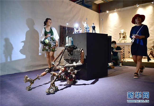 觀眾在參觀西安美術(shù)學(xué)院實(shí)驗(yàn)藝術(shù)系學(xué)生展出的畢業(yè)設(shè)計作品(6月10日攝)。新華社記者邵瑞攝