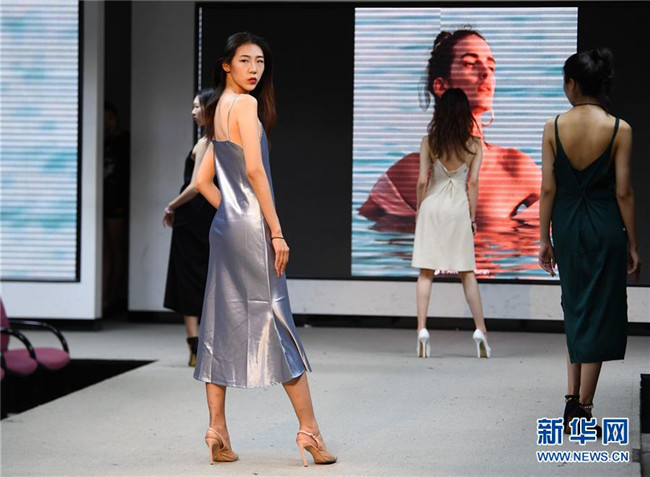 西安工程大學(xué)2018級服裝設(shè)計與表演專業(yè)的學(xué)生在練習(xí)動態(tài)造型展示(5月24日攝)。新華社記者張博文攝