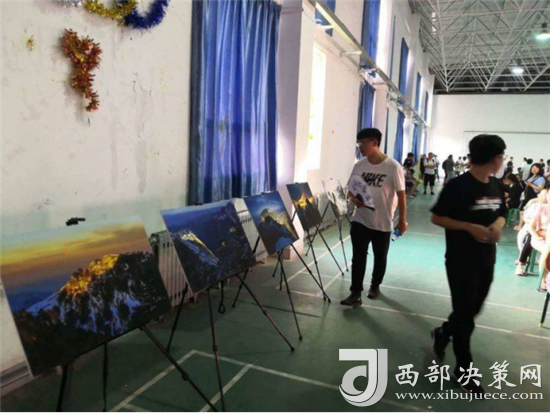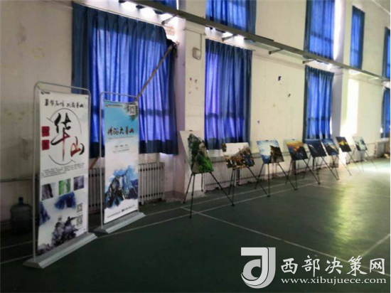 “演繹經(jīng)典”校園活動開場前,舞臺前方的投影大屏循環(huán)播放華山風(fēng)光宣傳片,奇險峻秀的大美華山風(fēng)光引得現(xiàn)場觀眾贊嘆不絕。舞臺下方分別通過華山風(fēng)光攝影展、活動展架等形式展示了華山四季的絕美風(fēng)光,吸引眾多師生駐足觀看。
