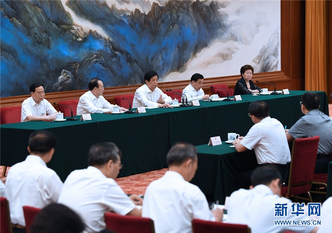中共中央政治局委員、全國人大常委會副委員長王晨主持會議。(記者陳菲)
