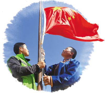 阿迪亞和兒子在升國旗。本報(bào)記者 吳 勇攝