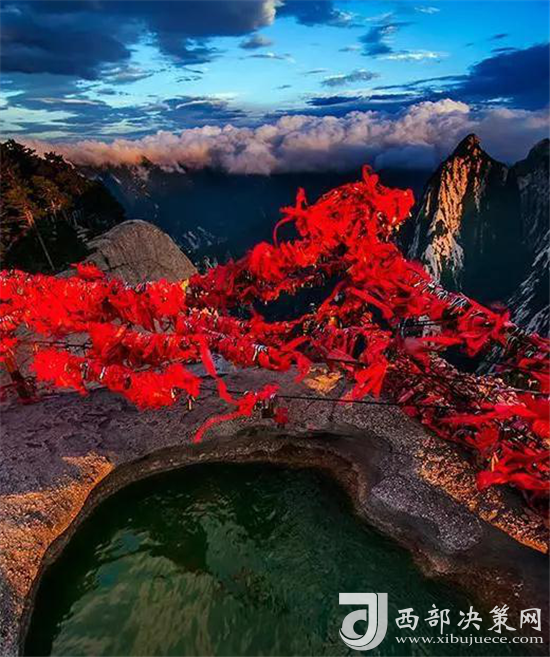 華山!認祖歸宗,五千年古國籍華山而得中華華夏國名。東據(jù)函潼,放眼秦晉豫扼守大西北進出中原險關;西望長安,翹首十三朝古都看秦漢風流盛唐氣韻;南牽秦嶺,分中國地理氣候環(huán)境南北界限于天然;北瞰黃渭,襟水從天上飛來浪淘出千古黃土文明。煙嵐浸潤,千山競秀千秋畫,群峰聳峙,萬壑雄風萬古音。一幅華山畫圖,點綴神州幾分鮮紅,幾分翠綠,幾分蒼勁,幾分神圣!