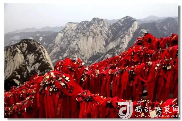 華山是一座愛情的殿堂,華山上的愛情故事悲烈、凄美而感人。我們曾經(jīng)為世界上許許多多的愛情故事所感動。其實,發(fā)生在華山上的愛情故事一樣讓人的心情無法平靜。眾所周知的神話傳說《寶蓮燈》中,三圣母為了愛情,被二郎神巨石壓在華山頂上;弄玉為了愛情,逃離安逸的生活,與蕭史雙雙來到華山,琴瑟合鳴;漢臣王咸不畏艱險,到華山尋找賢妻南陽公主,等等。這些愛情故事,感天動地,流傳不衰,不知讓多少人為之贊嘆。也許是讓華山上的這些動人的愛情故事所感染,不知從什么時候開始,在代表著堅實聯(lián)結(jié)的一串串鐵鏈上,游人掛上了金光閃閃的鎖子,把矢志不渝的愛情鎖在華山上,祝愿自己的愛情如同華山一樣永遠不會改變。華山,有許許多多這樣與愛情有關(guān)的物事。華山,不愧是一座愛情的殿堂。