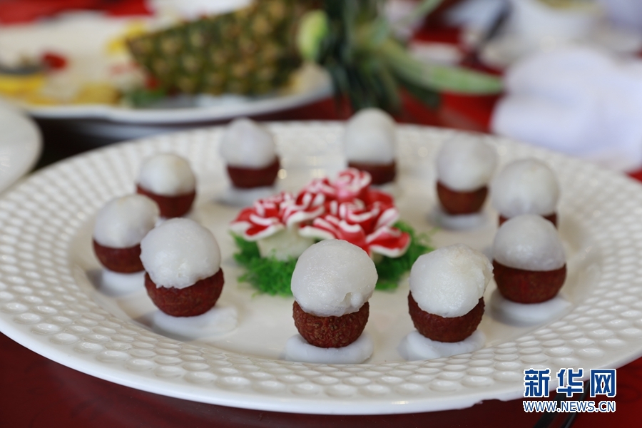 本次紅云宴對荔枝品種進行精挑細選,與多種嶺南特色食材搭配,烹制出富有嶺南意蘊和西關(guān)風(fēng)味的10道佳肴。新華網(wǎng) 林曉蕾攝