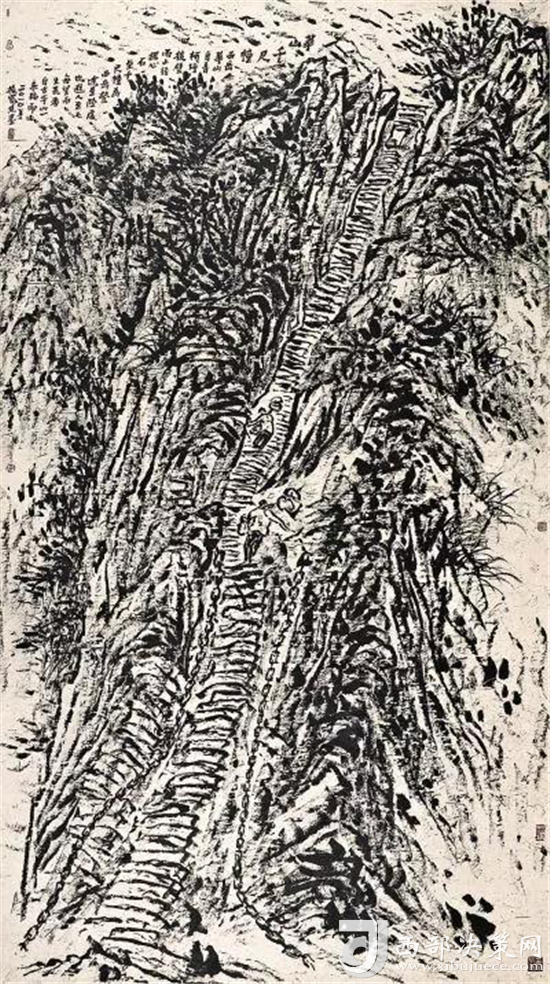 郵票中的畫作為“華山千尺幢全景俯視圖”