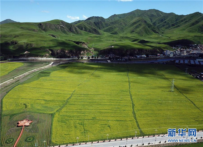 盛夏時(shí)節(jié),位于青藏高原東北部的甘肅省甘南藏族自治州碌曲縣油菜花田美不勝收。
