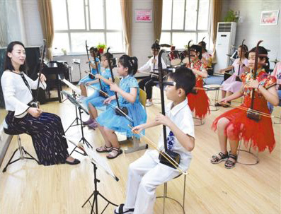 在河北省新樂市青少年活動中心,孩子們參加二胡興趣班。 影像中國
