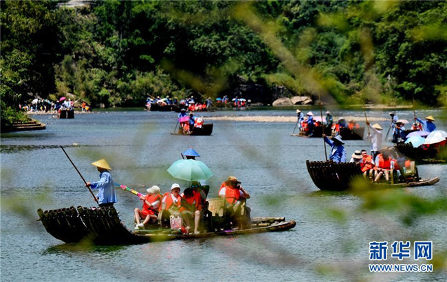 8月4日,游人乘竹筏漂流在武夷山九曲溪。新華社記者 張國(guó)俊 攝