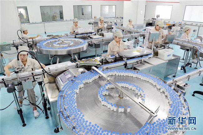 位于沈陽(yáng)的東北制藥集團(tuán)的員工在生產(chǎn)線上作業(yè)(資料照片)。新華社發(fā)(東北制藥供圖)