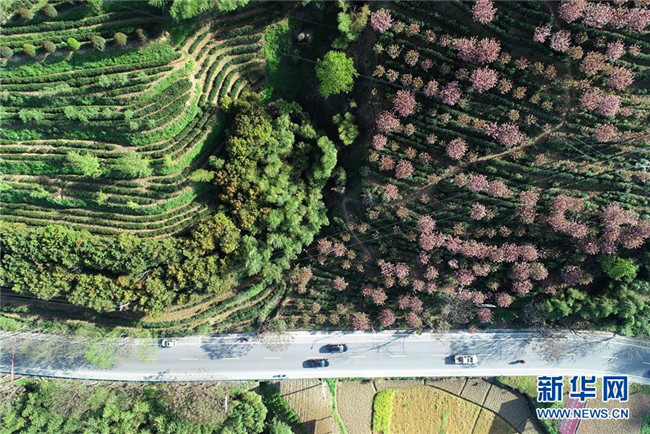這是安康市平利縣長安鎮(zhèn)高峰村洪福茶山景色(4月4日無人機拍攝)。新華社記者 邵瑞 攝
