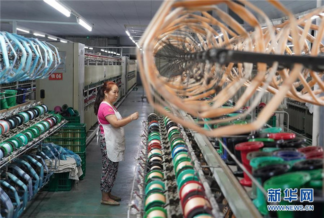 工人在安康市石泉縣陜西天成絲業(yè)有限公司生產車間內工作(8月7日攝)。新華社記者 邵瑞 攝