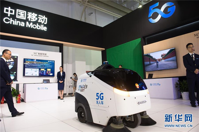 6月8日,在浙江寧波舉行的首屆中國-中東歐國家博覽會上,參展商在展示5G無人清掃車。新華社記者 翁忻旸 攝