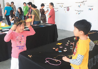 吳靜好和弟弟金羿安(右)在參觀社區(qū)美術(shù)營作品展