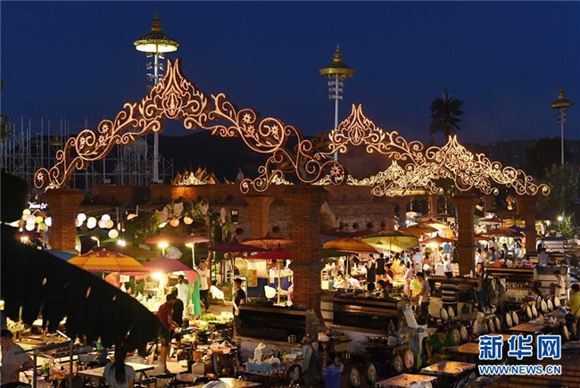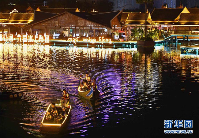 夜幕降臨,云南省西雙版納傣族自治州景洪市瀾滄江畔燈火璀璨,人頭攢動,熱鬧非凡。
