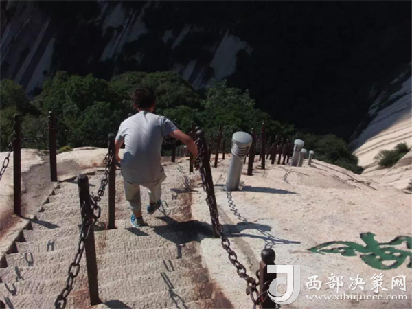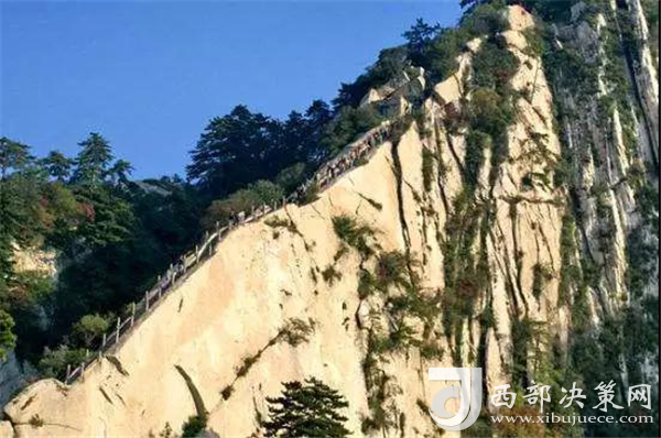 千百年前,陡峭如削的華山,艱險異常,難以登攀,只能“望山興嘆”“遠而望之”。后來人們循猿徑,依山就勢,巧妙地利用天設地造的石隙嶺脊,開鑿出了登山道路,始有天下奇觀“自古華山一條路”。