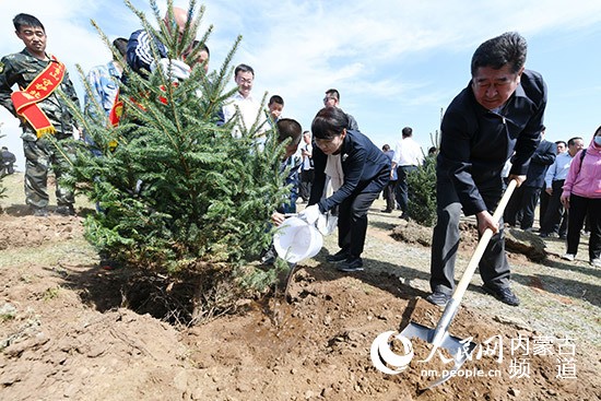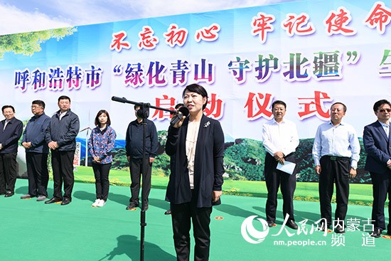 內(nèi)蒙古自治區(qū)黨委常委、呼和浩特市委書記王莉霞宣布生態(tài)建設(shè)行動啟動。