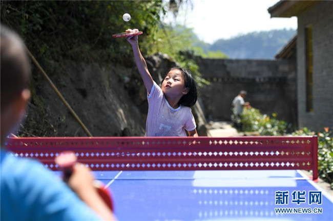 9月5日,十八洞小學學生在午飯后一起玩乒乓球。 新華社記者 陳澤國 攝