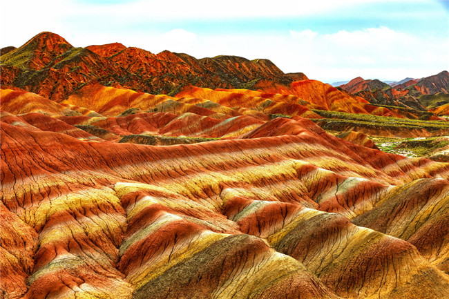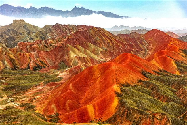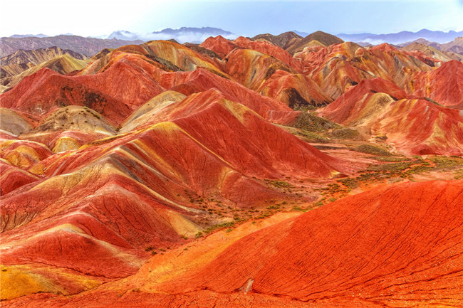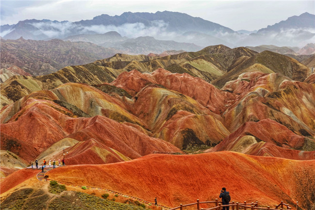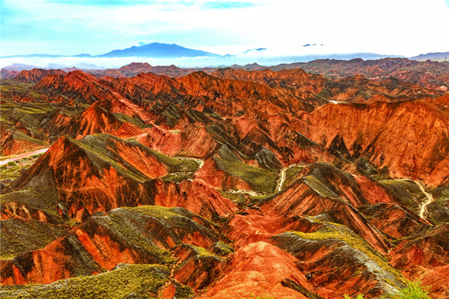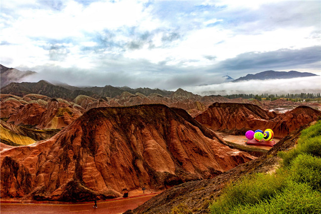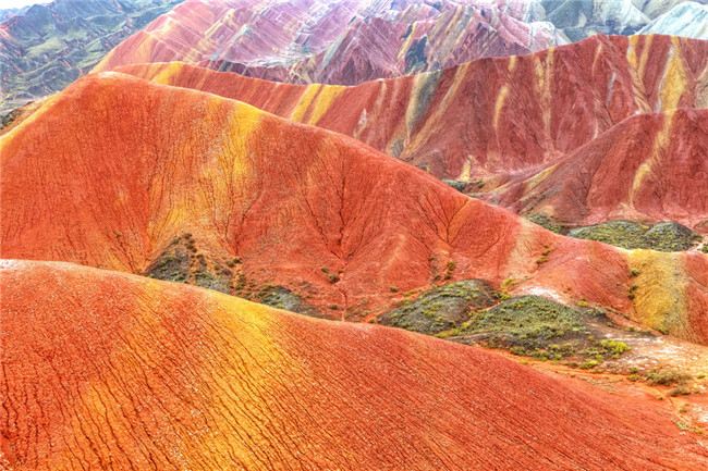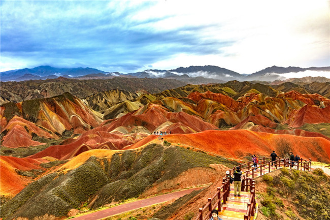 9月9日,甘肅張掖七彩丹霞旅游景區(qū)。一場小雨剛剛飄過,整個景區(qū)如同燃燒了萬年的火焰,更加艷麗、熱烈而磅礴。位于祁連山北麓臨澤、肅南縣境內(nèi),距張掖市區(qū)30公里、臨澤城區(qū)20公里,分布面積約50平方公里的七彩丹霞景區(qū),是中國北方干旱地區(qū)發(fā)育最典型的丹霞地貌及國內(nèi)唯一的丹霞地貌與彩色丘陵景觀復(fù)合區(qū)。先后被評為“中國最美的七大丹霞”“中國最美的六處奇異地貌”“世界十大神奇地理奇觀”和全球最刻骨銘心的22處風(fēng)景之一,現(xiàn)為國家地質(zhì)公園、國家4A級旅游景區(qū)和省級風(fēng)景名勝區(qū)。