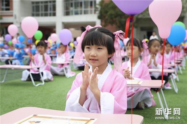 2019年9月10日,甘肅省蘭州市華僑實(shí)驗(yàn)學(xué)校為一年級新生舉辦“開筆禮”儀式,讓孩子們體驗(yàn)傳統(tǒng)文化,迎接新的學(xué)習(xí)生涯。