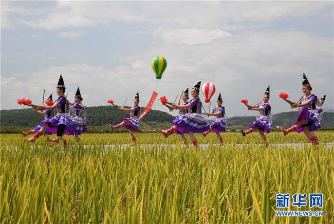 金秋時(shí)節(jié),云南省尋甸回族彝族自治縣在七星鎮(zhèn)魯古村舉行慶祝豐收活動(dòng)。 新華社記者 楊宗友 攝