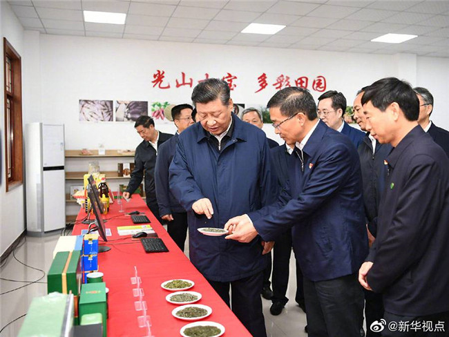 習近平總書記17日上午前往河南省光山縣司馬光油茶園和文殊鄉(xiāng)東岳村,考察調研當?shù)孛撠毠怨ぷ鞒尚Ш椭修k在光山縣扶貧工作情況,看望慰問老區(qū)群眾。(文字記者:張曉松、朱基釵 攝影記者:鞠鵬、謝環(huán)馳)