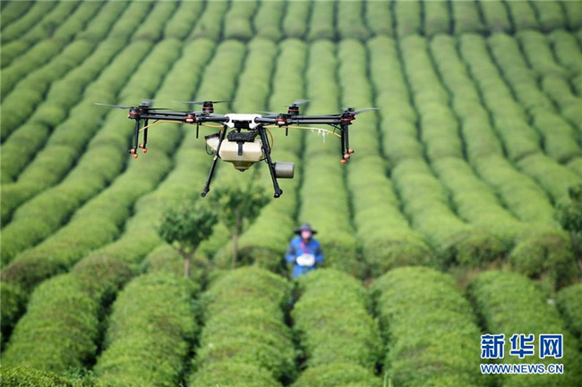 農(nóng)技人員操作植保無人機在貴州省安順市西秀區(qū)明英茶生產(chǎn)基地作業(yè)(5月23日攝)。 近年來,貴州省圍繞產(chǎn)業(yè)選擇、培訓(xùn)農(nóng)民、技術(shù)服務(wù)、資金籌措、組織方式、產(chǎn)銷對接、利益聯(lián)結(jié)、基層黨建等“八要素”,通過“減、融、服”創(chuàng)新推進農(nóng)村產(chǎn)業(yè)結(jié)構(gòu)調(diào)整,既帶動了農(nóng)戶增收,也推動了特色產(chǎn)業(yè)做大做強。 新華社記者 楊文斌 攝