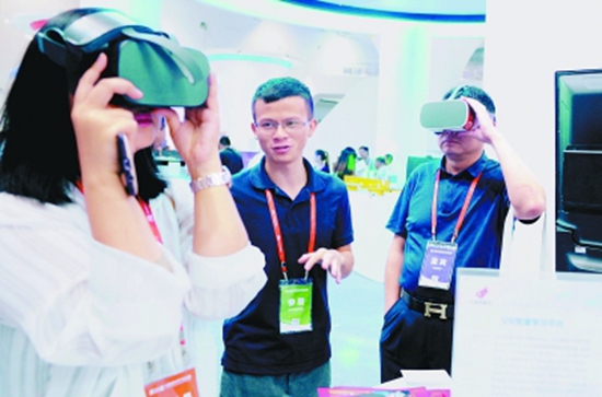 7月5日第二十屆中國(guó)海外學(xué)子創(chuàng)業(yè)周上,觀眾體驗(yàn)VR產(chǎn)品(圖源:新華社)