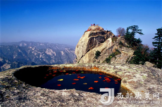 西峰海拔2082.6米,因峰巔有巨石形狀好似蓮花瓣,古代文人多稱其為蓮花峰、芙蓉峰。徐霞客《游太華山日記》中記述:“峰上石聳記,有石片覆蓋其上,如荷花。”當(dāng)指此石。西北絕崖萬丈,似刀削鋸截,其陡峭巍峨、陽剛挺拔之勢是華山山形之代表,因此古人常把華山叫蓮花山。