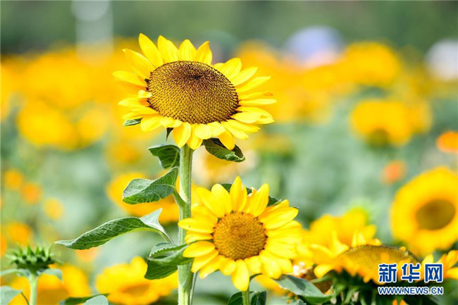 近日,位于長(zhǎng)沙市的湖南省森林植物園中的向日葵在秋陽下競(jìng)相綻放,黃花綠葉交相輝映,吸引眾多市民、游客前來觀賞。