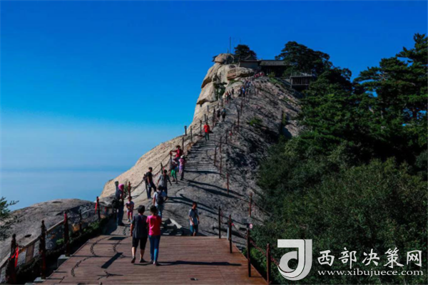 華山是我國(guó)著名的五岳之一,不但是五岳最險(xiǎn),還是五岳最高的山。其雄偉奇險(xiǎn),山勢(shì)峻峭,東、南、西三峰拔地而起,如刀一次削就,壁立千仞,群峰挺秀,以險(xiǎn)峻稱雄于世,自古以來就有“華山天下險(xiǎn)”“奇險(xiǎn)天下第一山”的說法。由于華山太險(xiǎn),魏晉南北朝時(shí),還沒有通向華山頂峰的道路。直到唐朝,隨著道教興盛,道徒開始居山建觀,逐漸在北坡沿溪谷而上開鑿了一條險(xiǎn)道,形成了“自古華山一條路”。