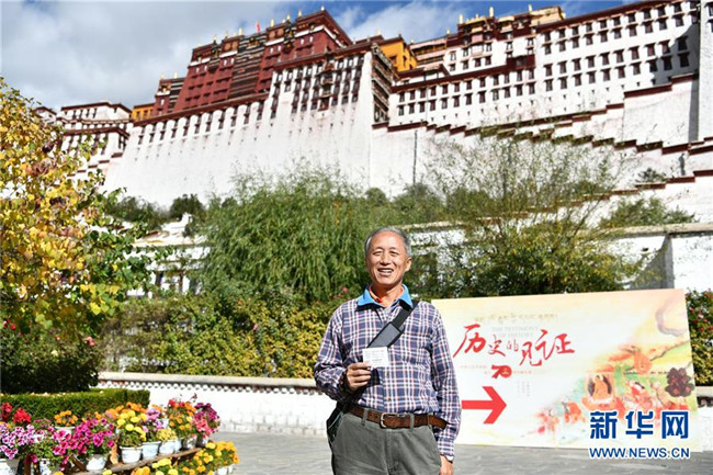 10月15日,來自廣東的游客王衛(wèi)東展示他用身份證換取的布達(dá)拉宮散客免費預(yù)約券。