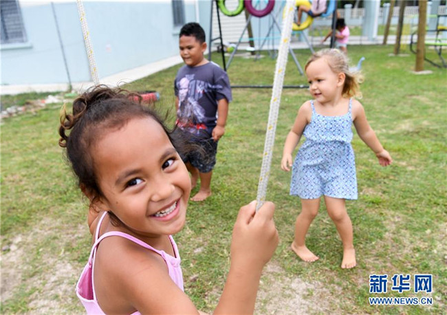 10月26日,在庫(kù)克群島首都阿瓦魯阿的阿皮尼考學(xué)校,幼兒園的孩子在操場(chǎng)上玩耍。