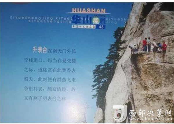 仰天池、洞里甕、全真崖、升表臺(tái),以上就是華山四大謎,帶大家游覽了一番,您覺(jué)得有更好的解釋嗎?如果有可以給我們留言,讓我們大家共同探索華山的未解之謎,用彩筆為華山之謎畫(huà)下最美的謎底吧?。ü└澹喝A旅集團(tuán)營(yíng)銷(xiāo)中心)