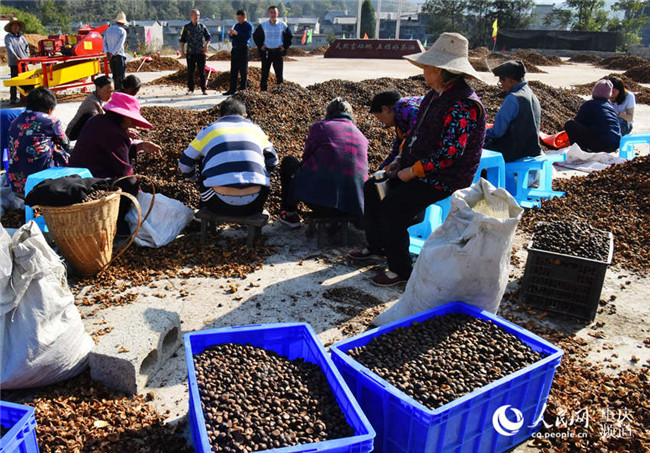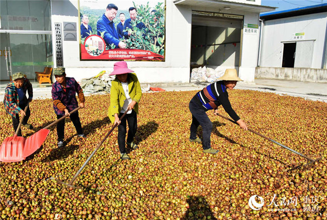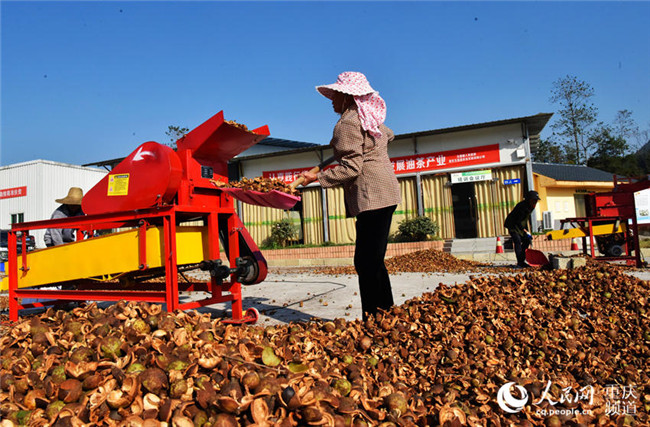 1月3日,在重慶市酉陽(yáng)土家族苗族自治縣五福鎮(zhèn)的五福盈茶油定制工廠,工人們正忙著晾曬油茶籽,整個(gè)廠區(qū)一片繁忙景象。近年來(lái),該縣采取“生態(tài)+產(chǎn)業(yè)”模式在荒山上開(kāi)發(fā)的上萬(wàn)畝油茶已陸續(xù)豐收,油茶產(chǎn)業(yè)成為當(dāng)?shù)剞r(nóng)民脫貧致富產(chǎn)業(yè)之一。