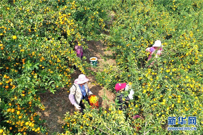 時(shí)下正是廣西鹿寨縣平山鎮(zhèn)數(shù)萬畝柑桔成熟上市的季節(jié)。據(jù)悉,2018年平山鎮(zhèn)柑桔產(chǎn)值3.29億元,隨著當(dāng)?shù)馗探鄯N植面積不斷擴(kuò)大,柑桔產(chǎn)業(yè)成為村民脫貧致富的重要產(chǎn)業(yè)。 新華社記者 周華 攝