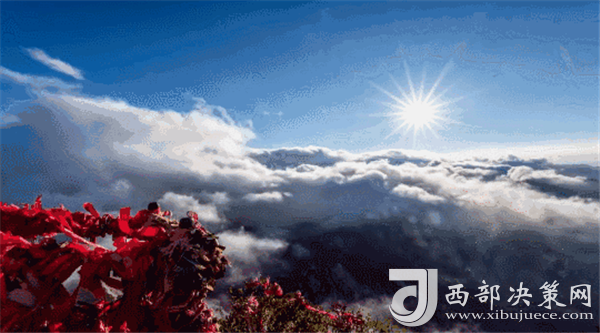 夜幕自東方悄然隱退,晨曦初露,漸漸霞光瑰麗,云源奔涌。瞬間,一輪火球噴薄而出,繼而光芒四射,氣象萬千,整個世界大放光明,現(xiàn)場的游人身心為之一振。待云霧散盡,蒼松翠柏,則更加清麗悅目,美妙神奇。