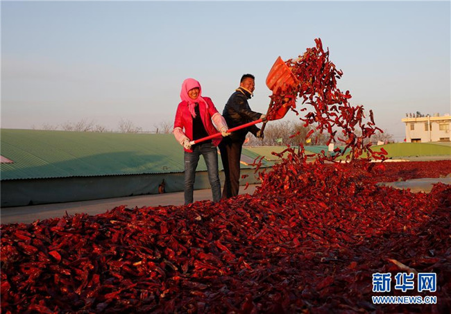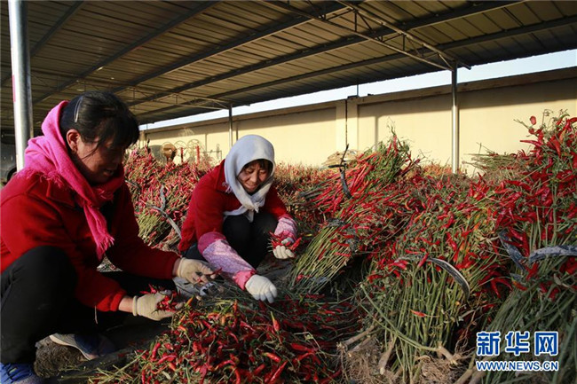 初冬時節(jié),甘肅省金昌市永昌縣水源鎮(zhèn)的村民們利用農閑來到附近的辣椒加工廠打工,在家門口就業(yè)增收,每位村民每天可以增加100元左右的收入。